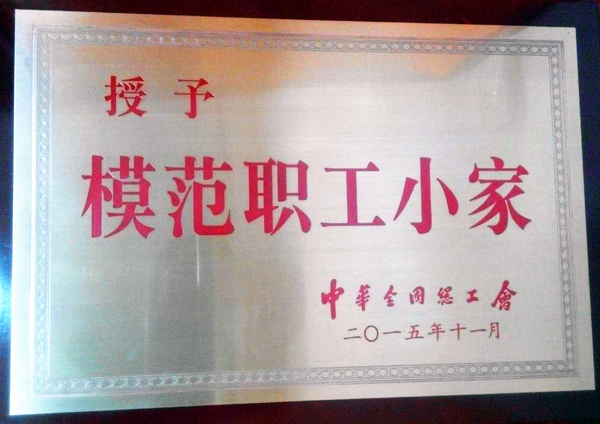 2015年12月25日,公司獲得由中華全國總工會授予的“模范職工小家”榮譽銅牌。